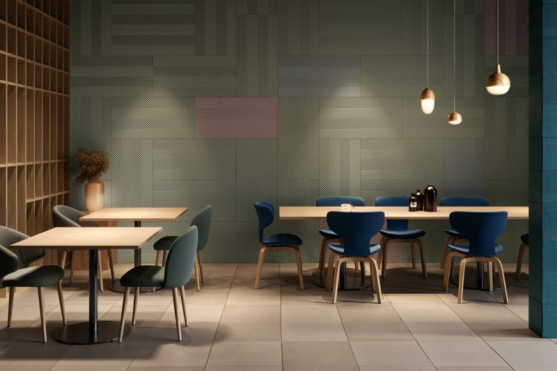 A palette comprising subdued, biodegradable colours provides the opportunity to enhance acoustics while also honouring principles of sustainable design. The bio-based colours seamlessly blend functionality, aesthetics, and environmental responsibility.