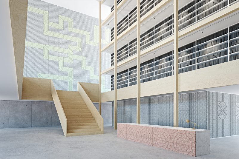 The open material structure reduces sound reflections and makes BAUX Acoustic Wood Wool a good sound absorber. The material dampens noise and contributes to restful acoustics in residential buildings, industrial premises and public spaces.